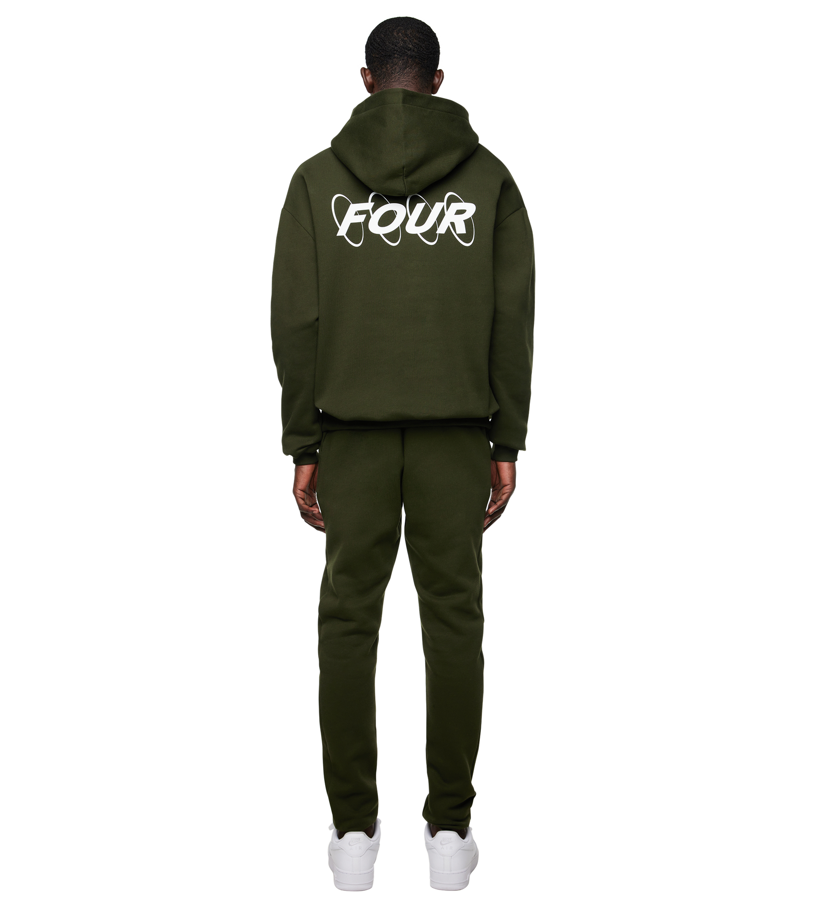An oversized fleece hoodie designed with a clean silhouette and signature circular logo detailing. The army green tone gives the piece a grounded, contemporary look, while the small chest logo and large back artwork create a balanced graphic identity. Made from structured 330 GSM fleece for a comfortable yet elevated feel.