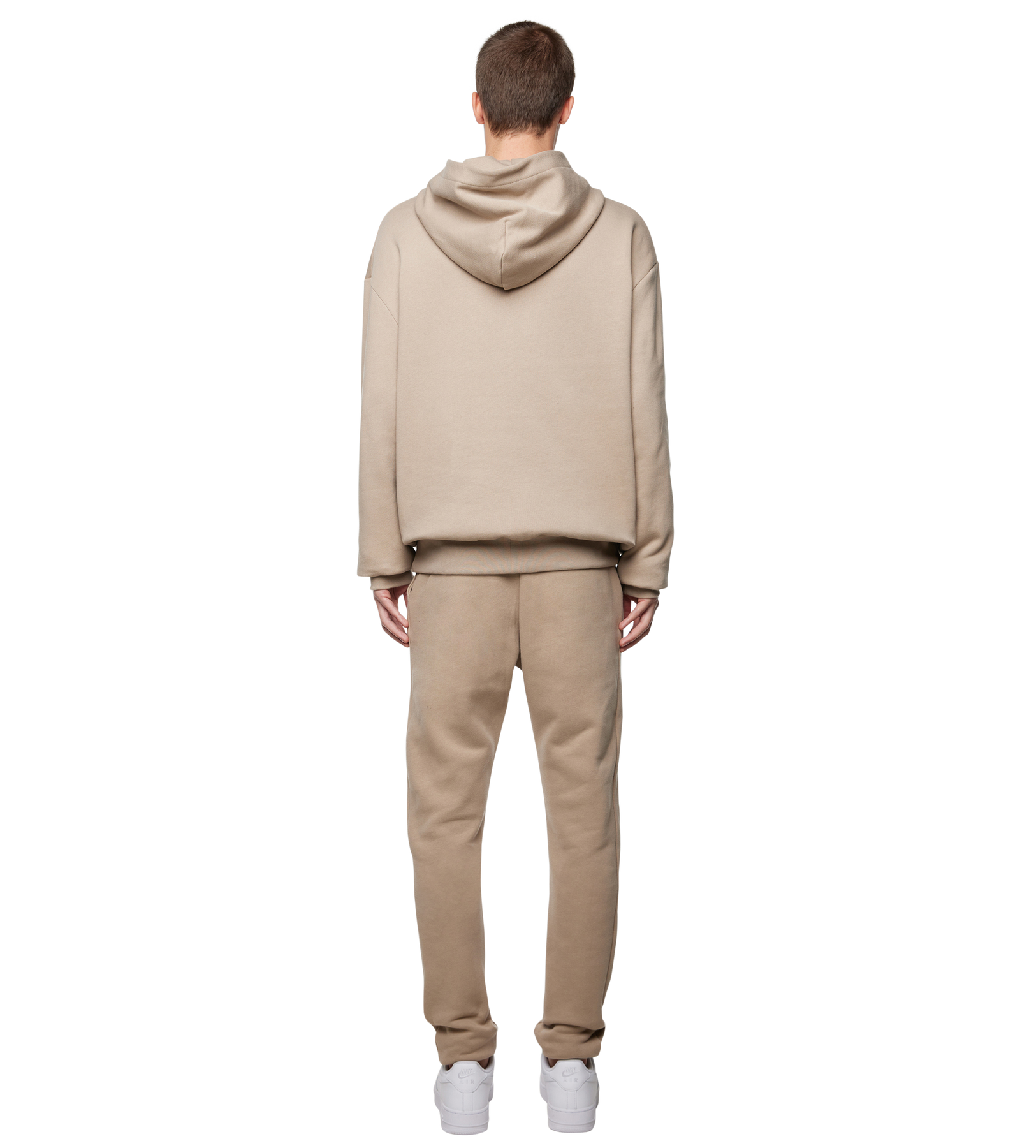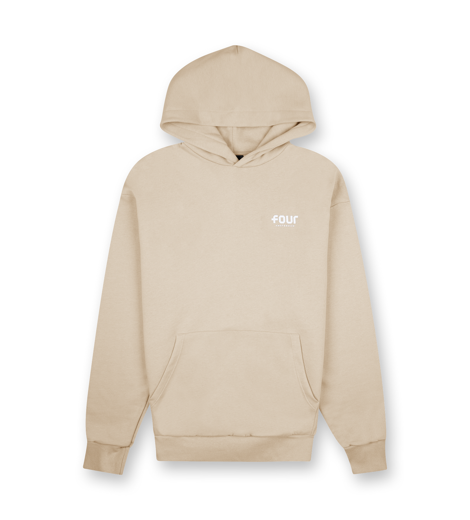 A premium fleece hoodie crafted from heavyweight 330 GSM cotton, designed in an oversized silhouette for a relaxed yet elevated look. The weathered teak tone adds a refined softness to the piece, while the small logo on the chest provides a subtle but distinctive FOUR signature. Finished with a classic hood and a clean kangaroo pocket, it stands as an everyday staple with a luxury edge.